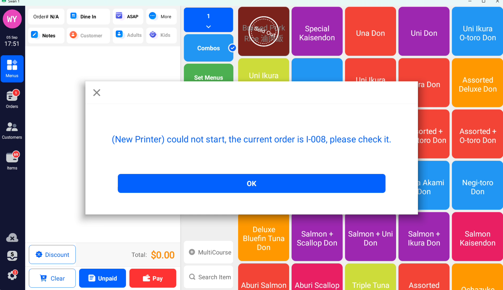 未配置 USB 备份打印机 建议在 POS 上进入 Printer Setting → Backup Printer → Connection,选择 USB 并配置一台其他打印机作为备份。